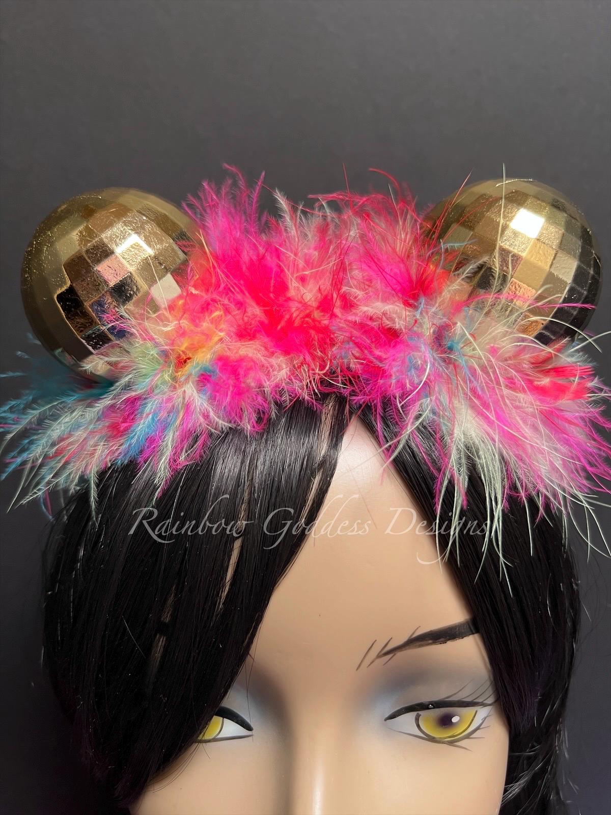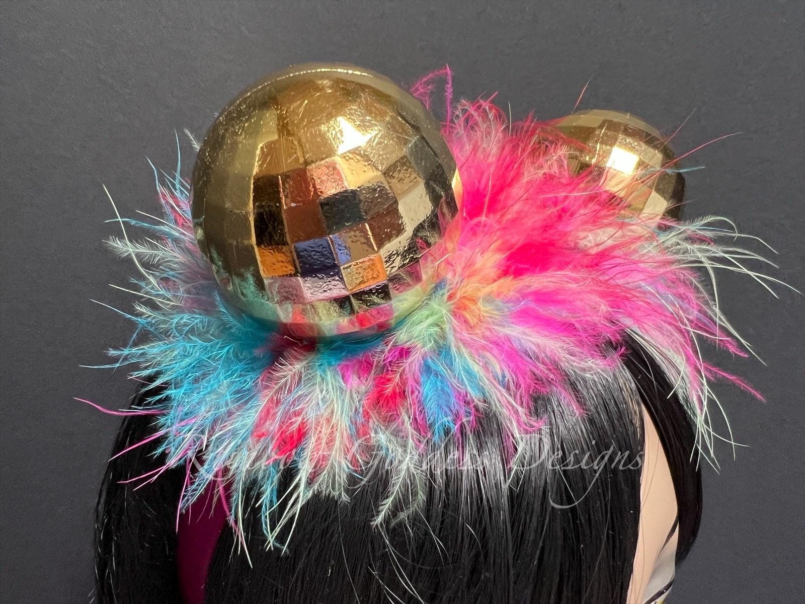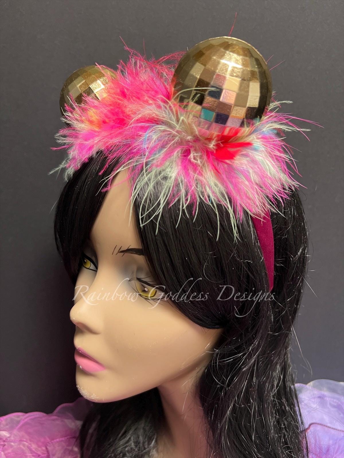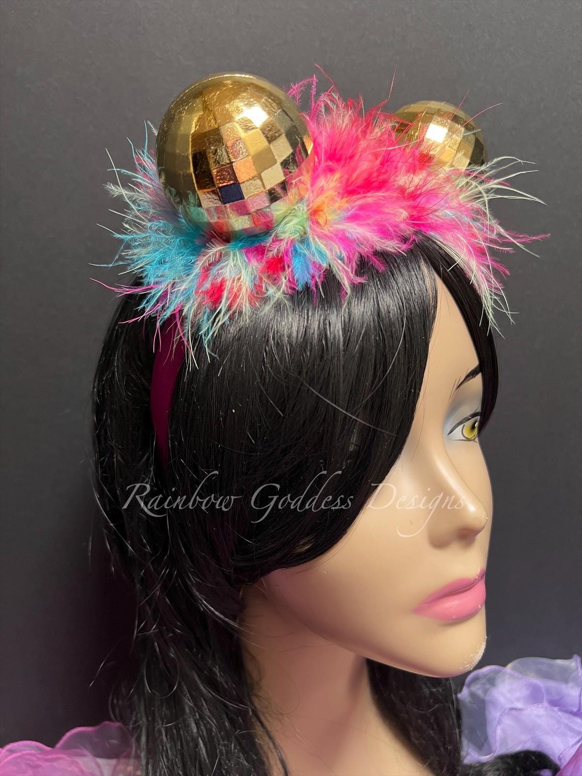 Add a pop of sparkle and whimsy to any outfit with this Disco Ball Rainbow Feather Headband, perfect for both kids and adults! 🪩🌈