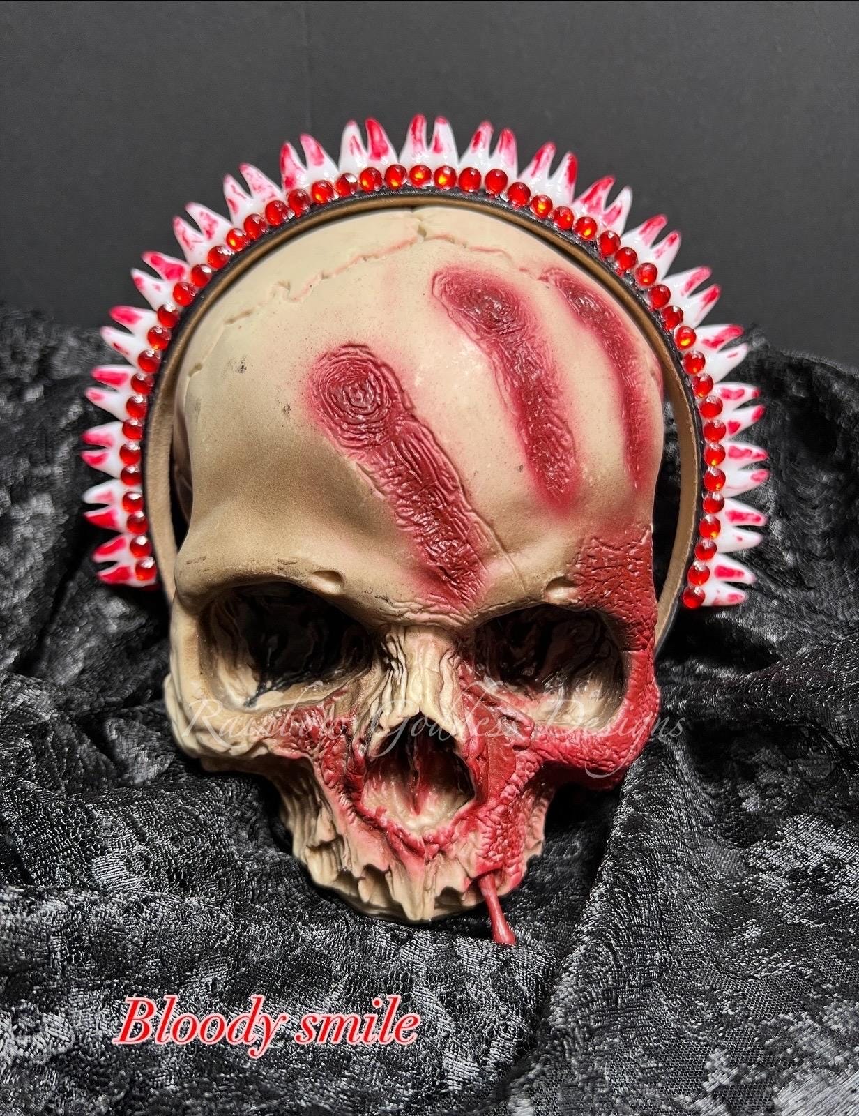 🩸 Bloody Smile – splattered with red paint for a freshly fed look.
