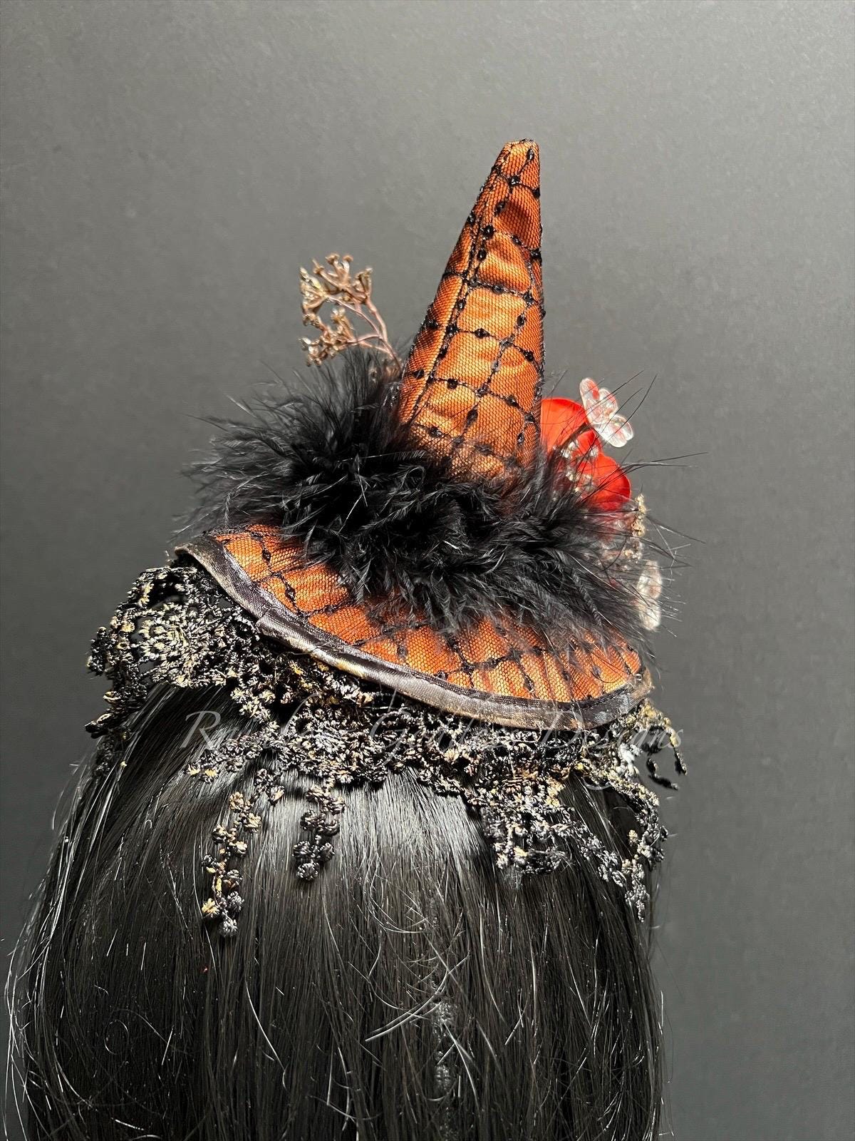 Embrace the magic of the season with this Mini Fall Witch Hat Headband, a spellbinding mix of gothic charm and autumn beauty.