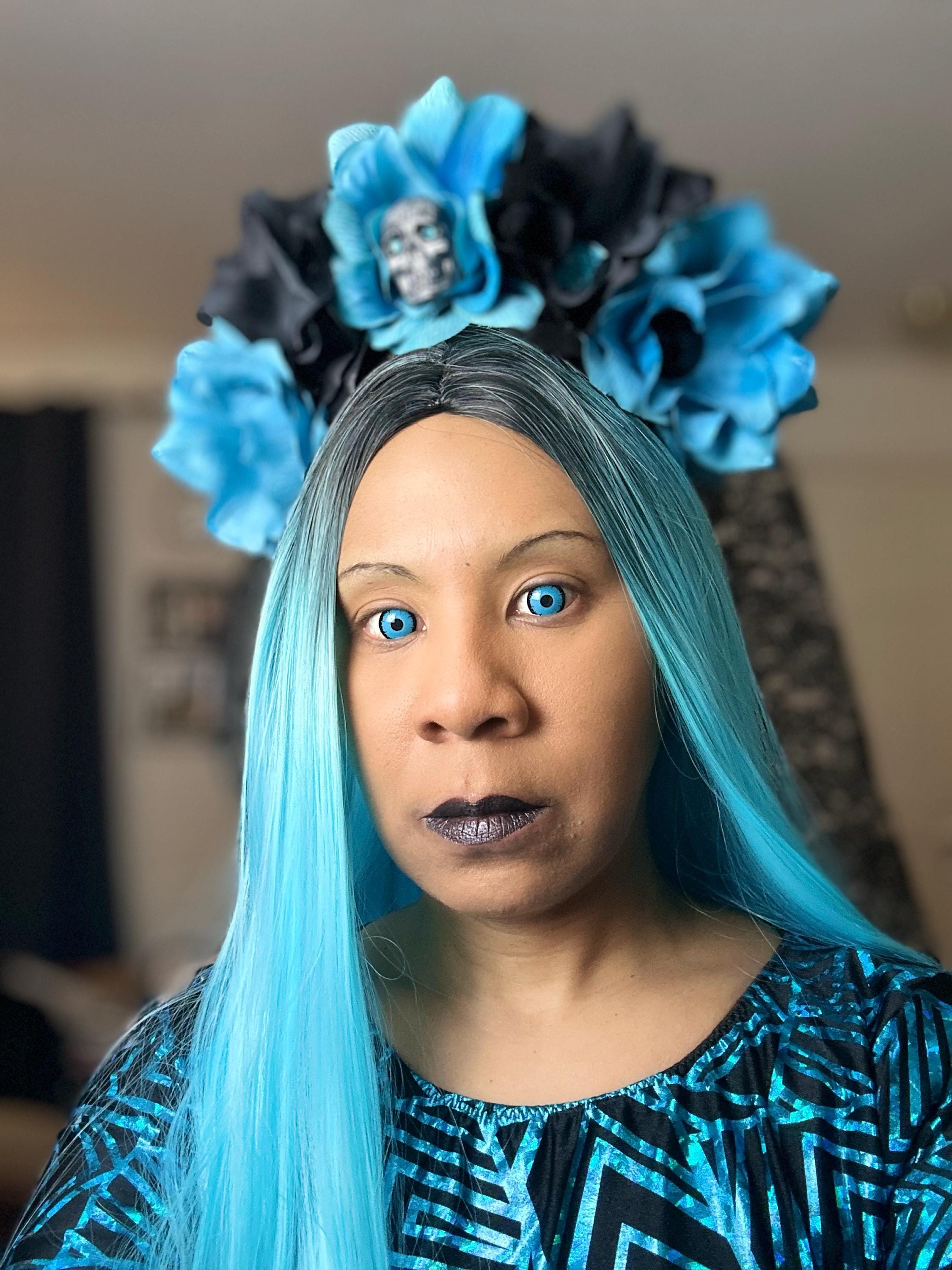 Day of the Dead inspired turquoise blue and black flower crown.